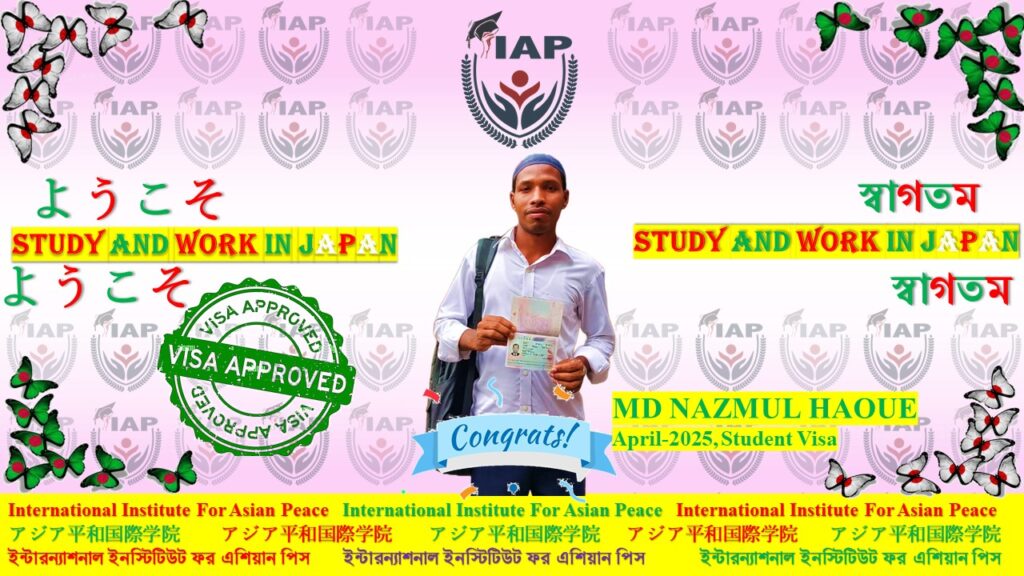 🎉 Congratulations to Our Dear Student! —for successfully obtaining her Japan Student Visa for the April 2025 session! ✈️ On behalf of the International Institute For Asian Peace (IIAP), we extend our heartfelt congratulations and warmest wishes for a successful academic and cultural journey in Japan. 🌸🇯🇵 Your dedication, perseverance, and hard work have truly paid off — and we are honored to be a part of your journey. We believe this is just the beginning of many more milestones to come! (愛する学生の皆さん、おめでとうございます! —2025年4月期の日本留学ビザを取得されました!🇯🇵✈️ 国際アジア平和研究所(IIAP)を代表して、心からお祝い申し上げます。日本での学問と文化の旅が実りあるものとなるよう、心よりお祈り申し上げます。🌸 皆さんの献身、忍耐、そして努力は、まさに報われました。そして、私たちは皆さんの旅路に携われたことを光栄に思います。これは、これから訪れる多くのマイルストーンの始まりに過ぎないと信じています。)