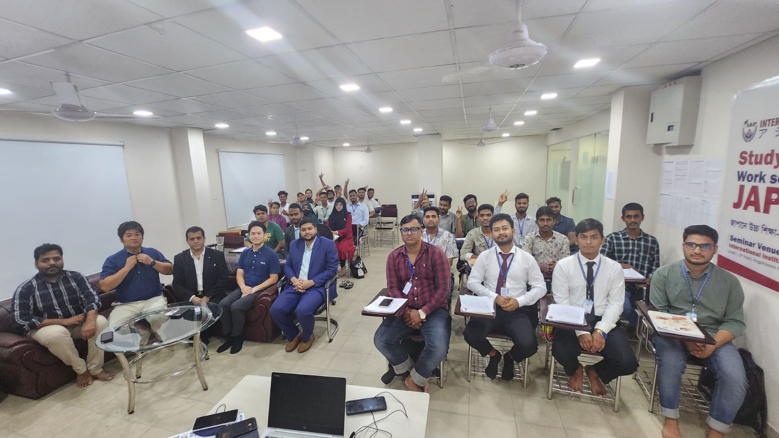 The “International Institute for Asian Peace” and “KM International” jointly conducted interviews yesterday for positions in Hotel Management and Tourism. The owner came directly from Japan to conduct the interviews and select candidates. Our honorable Chairman was also present at the event.